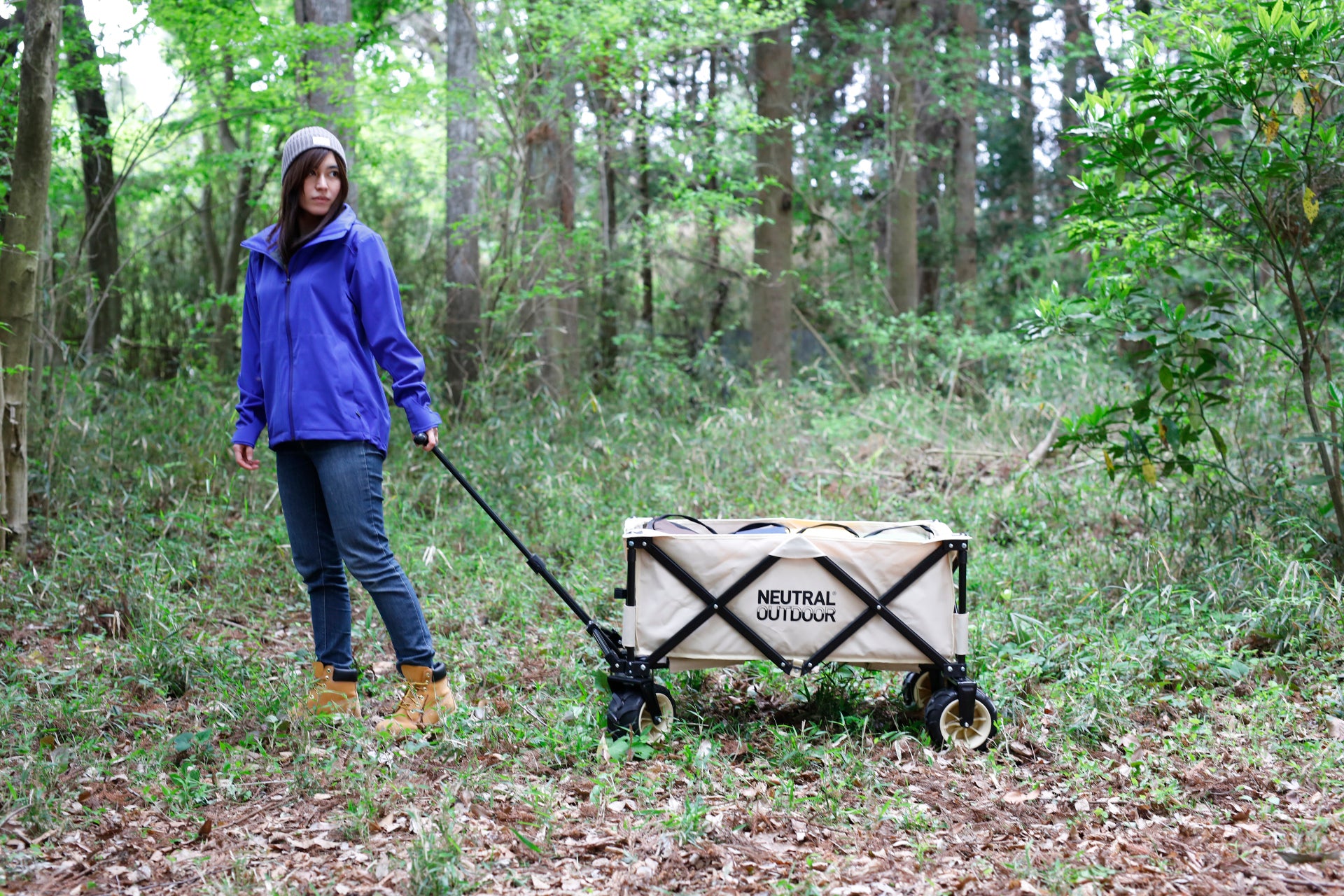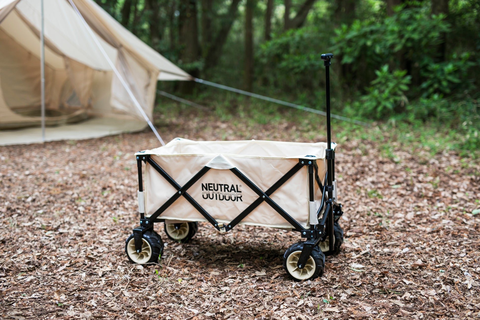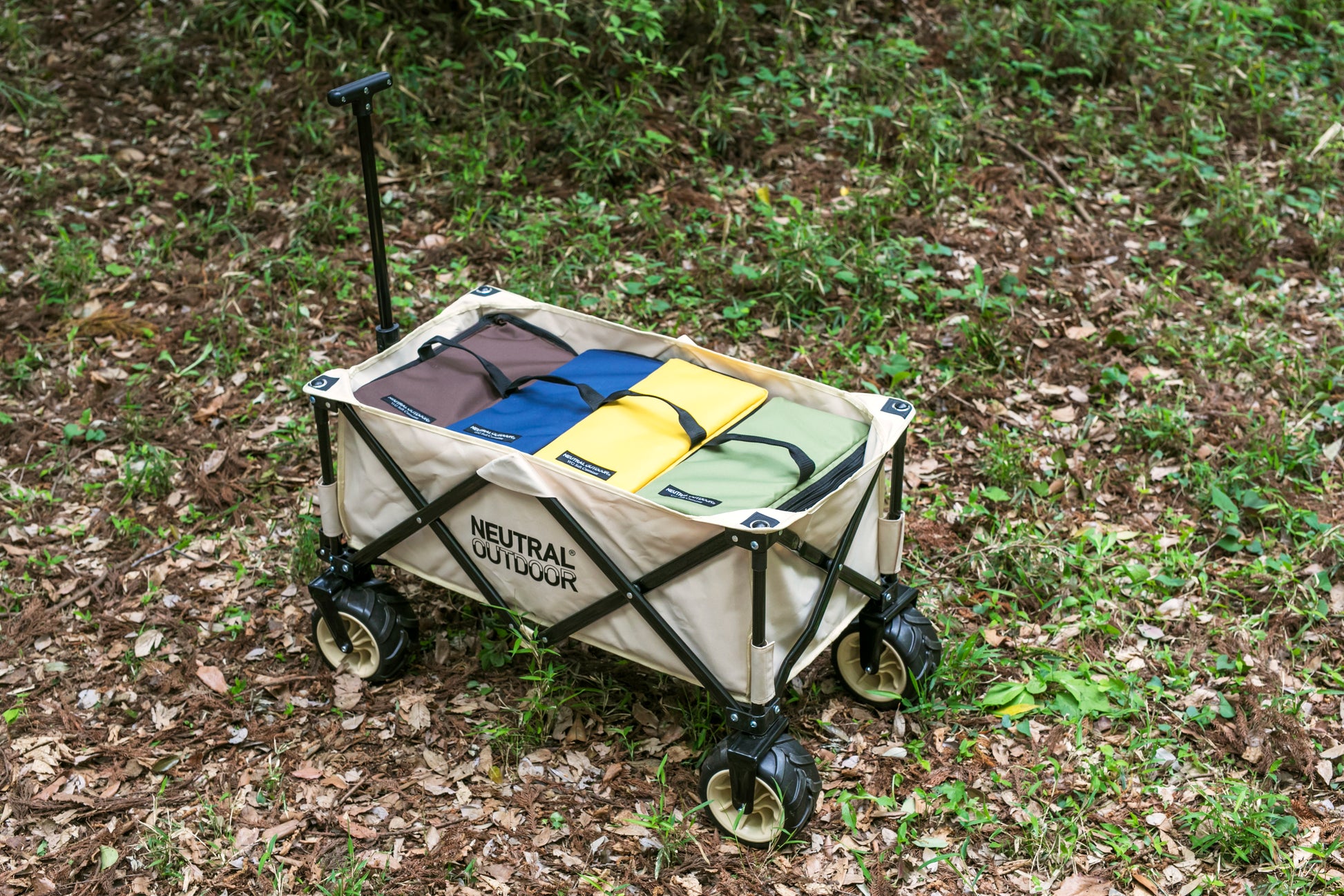 キャンプサイトで荷物を運ぶのに便利な、折りたたみ式キャリーワゴン。極太タイヤを採用し、個性的なルックスと、荒れたキャンプ地でもスムーズに移動できる抜群の走破性を誇ります。ワンタッチで組み立て、折りたたみが出来ます。IIにモデルチェンジして折りたたみ時のサイズは約25%ダウン、積載容量は約25%アップしました!